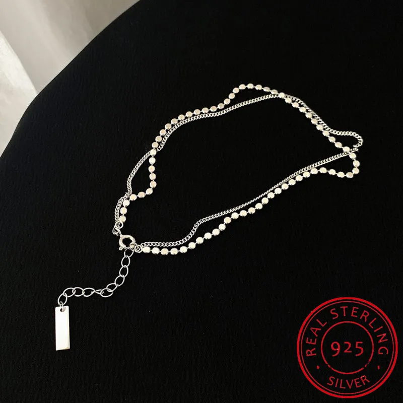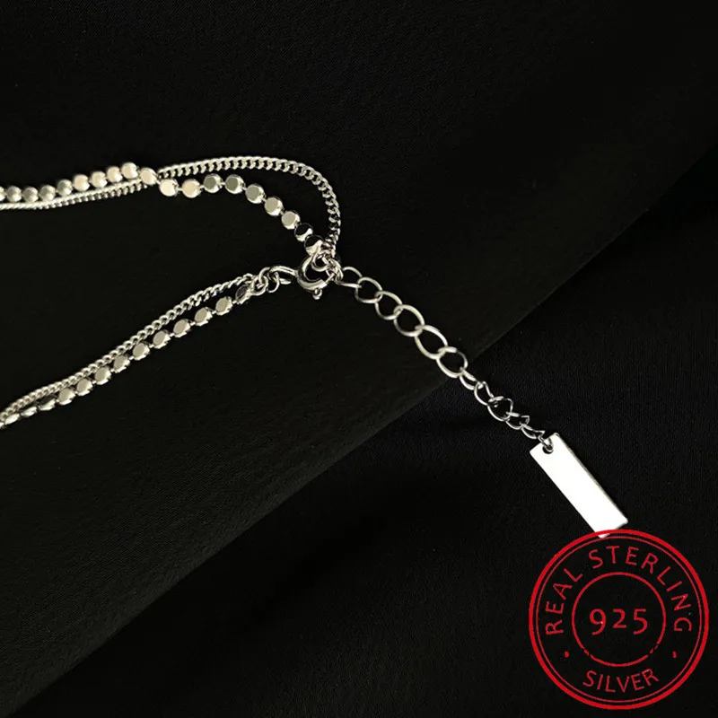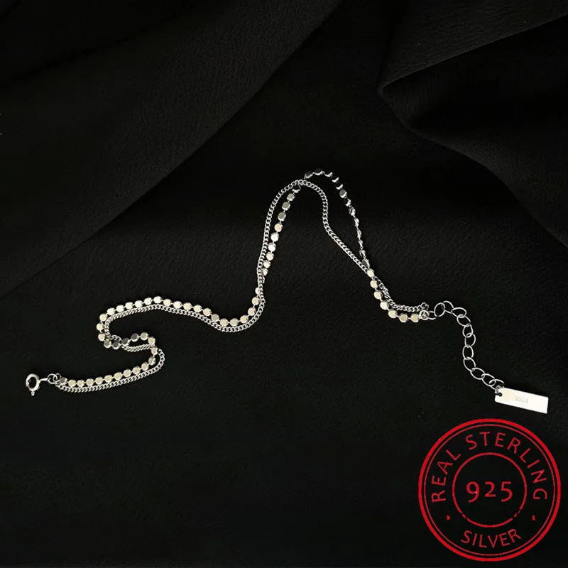 Браслет на ногу женский из серебра 925 пробы, блестящий двухслойный браслет с дисками, простой браслет на ногу, нишевое дизайнерское Ювелирное Украшение