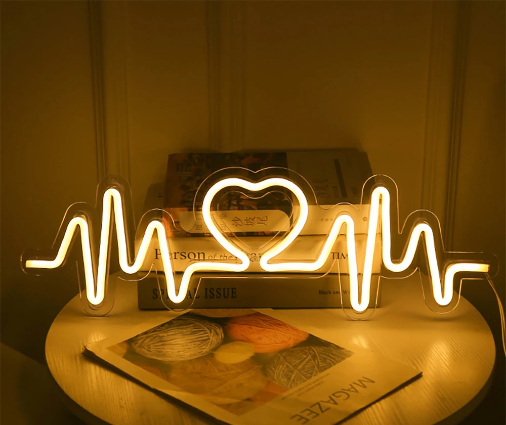 Неоновый светильник с сердечным ритмом, светодиодный неоновый свети...