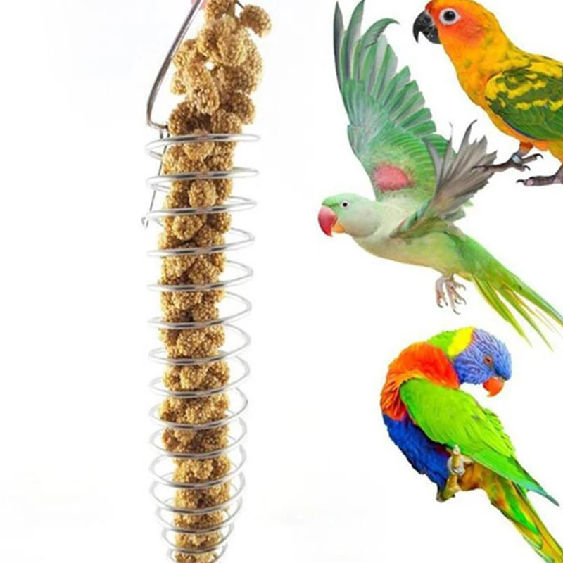 Портативная подвесная спиральная кормушка из нержавеющей стали, корзина для еды с попугаем, игрушка для кормления птиц, еда для попугая, держатель для фруктов