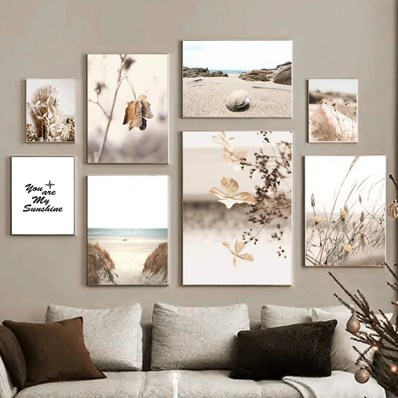 Скандинавский домашний декор, настенная Картина на холсте, бежевый ...