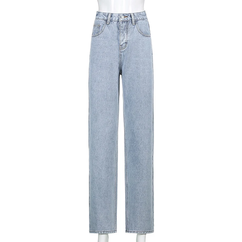 Джинсы женские, прямые, с высокой талией, в стиле Харадзюку