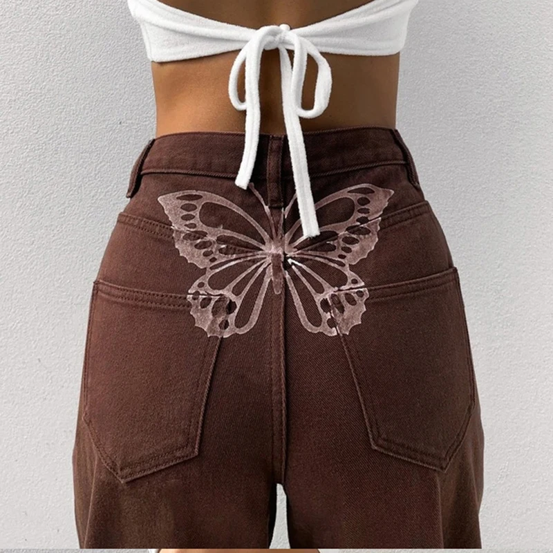 Прямые джинсовые брюки Harajuku с принтом бабочки, женские свободны...