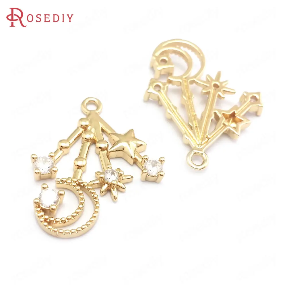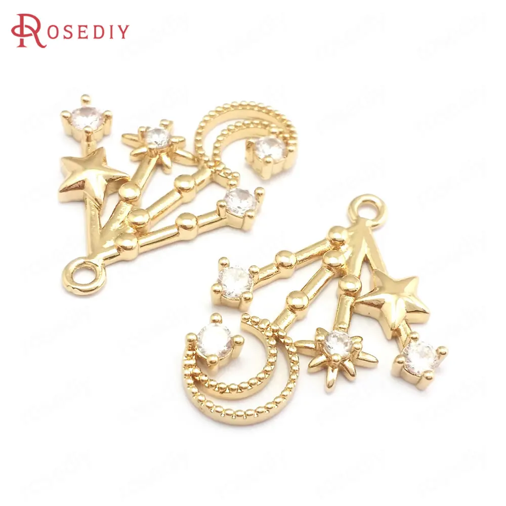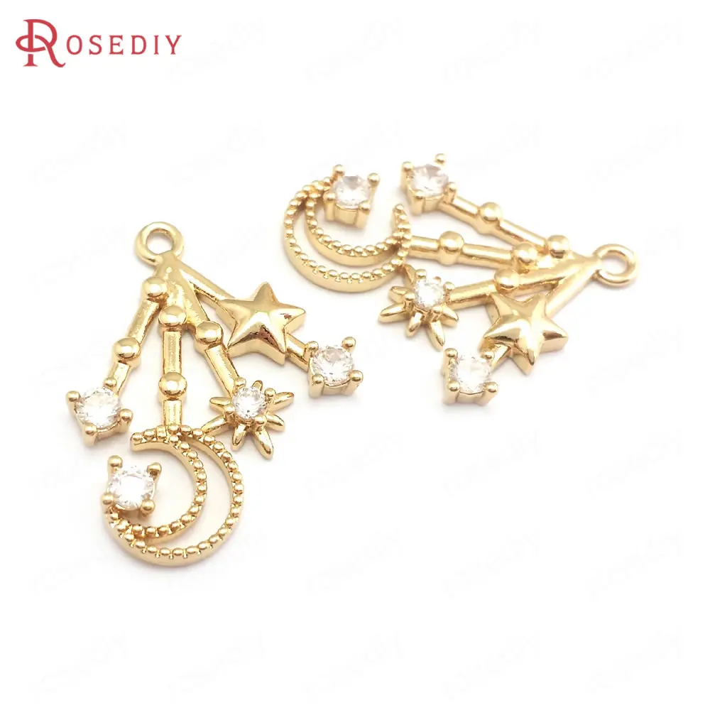 Подвески из латуни и циркона золотого цвета, цвета шампанского, 24 к