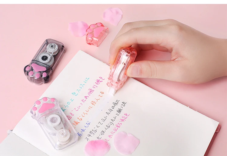 Корректирующая лента Kawaii в виде кошачьей лапы, 6 м х 5 мм, прозрачная, розовая, черная, школьные и офисные принадлежности, студенческий приз