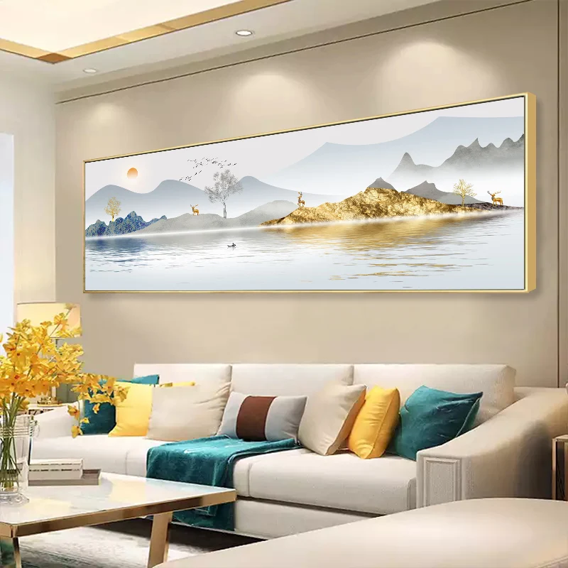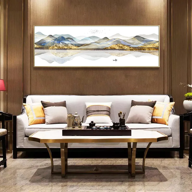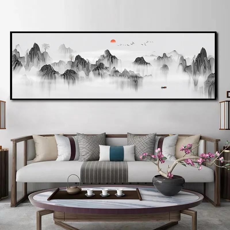 Настенная картина в китайском стиле, абстрактный пейзаж, озеро, холм, фотография, печать, офис, гостиная, домашний декор