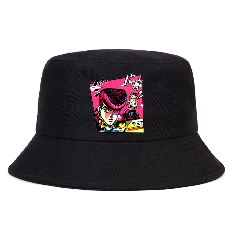 Панама женская хлопковая в стиле Невероятные приключения Джоджо, Панама с рисунком аниме JOJOs, Пляжная шапка рыбака в стиле хип-хоп, черная, на лето