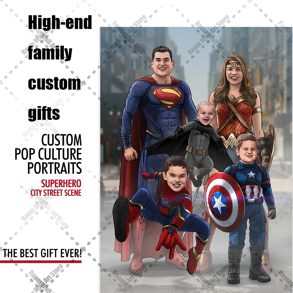 Персонализированный персонализированный постер Marvel Мстители, фотография семьи Человека-паука, фотообои, подарки, настенное искусство, украшение для детской комнаты