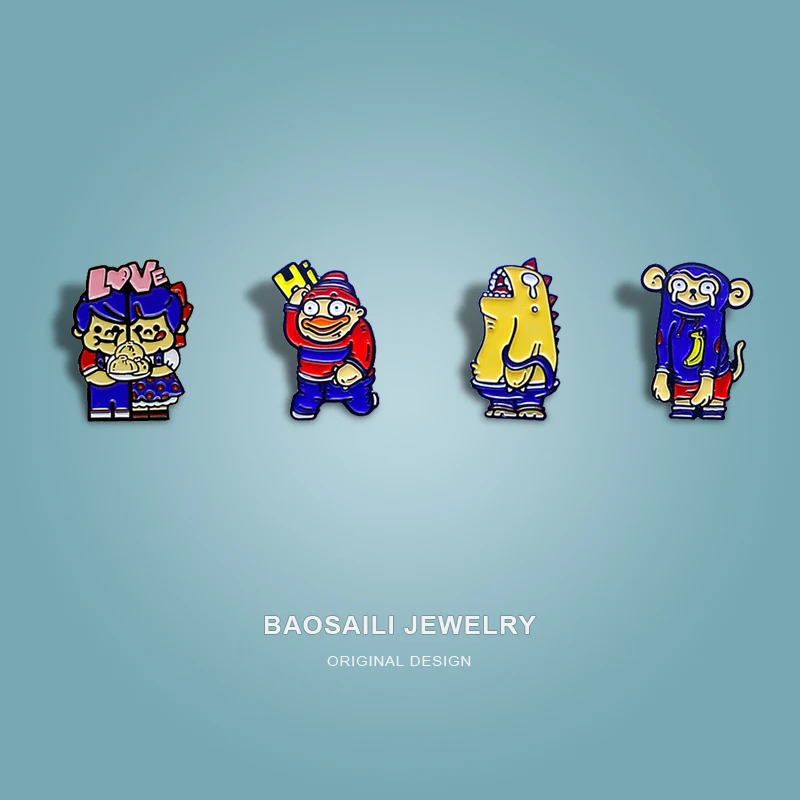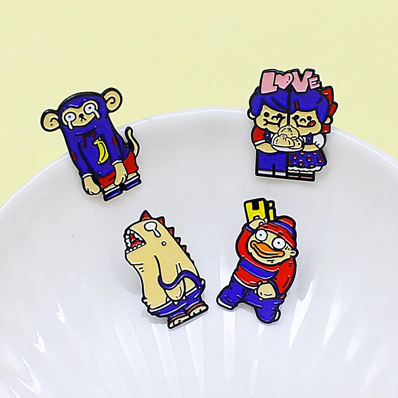 Милые эмалированные булавки с большим ртом и странными этикетками, креативная брошь с изображением грустной маленькой обезьянки в стиле влюбленного мяса в пучок для мальчиков и девочек