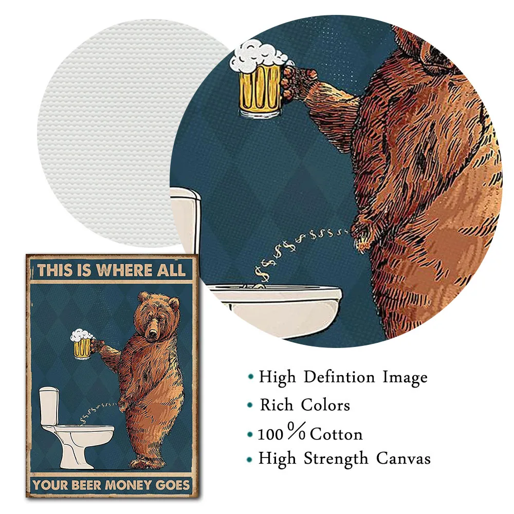 Медведь Grumpy питьевое пиво в ванную комнату Холст плакат абстрактная стена Художественная печать картина для ванной туалета стена домашний декор