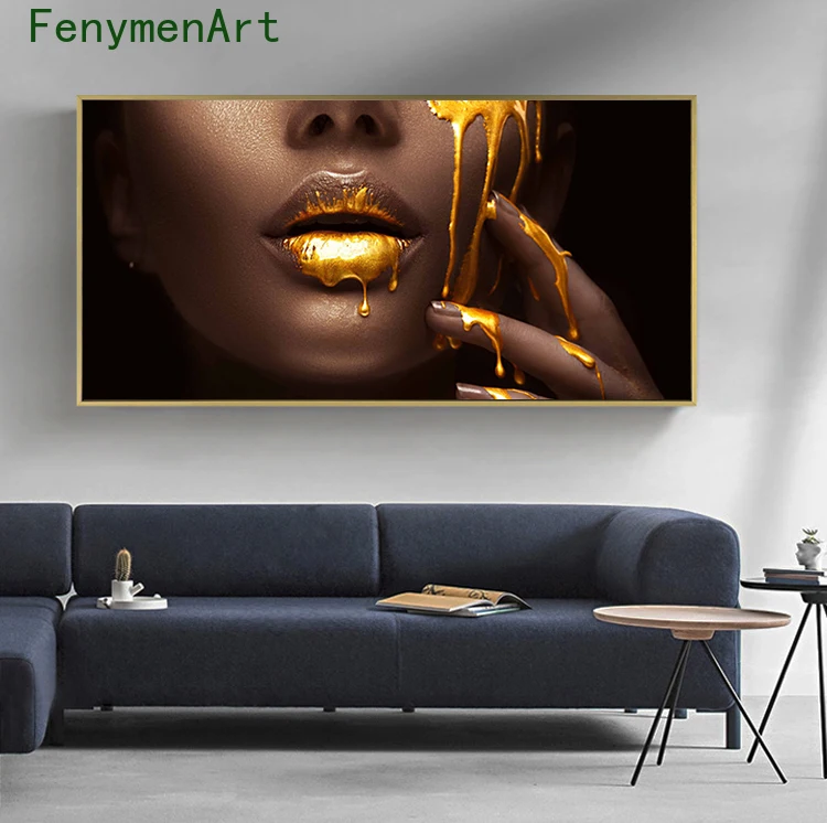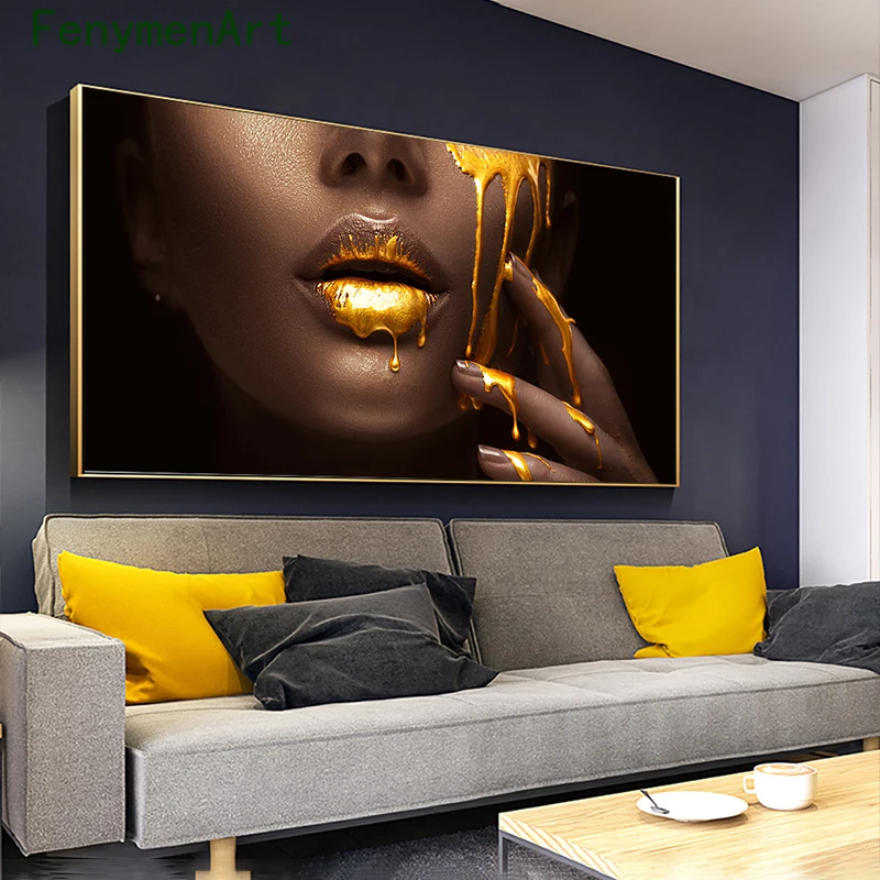 Картины на холсте с изображением золотых сексуальных губ, картины в скандинавском стиле с изображением сексуальной женщины для гостиной, украшение для дома, Современная фотостена