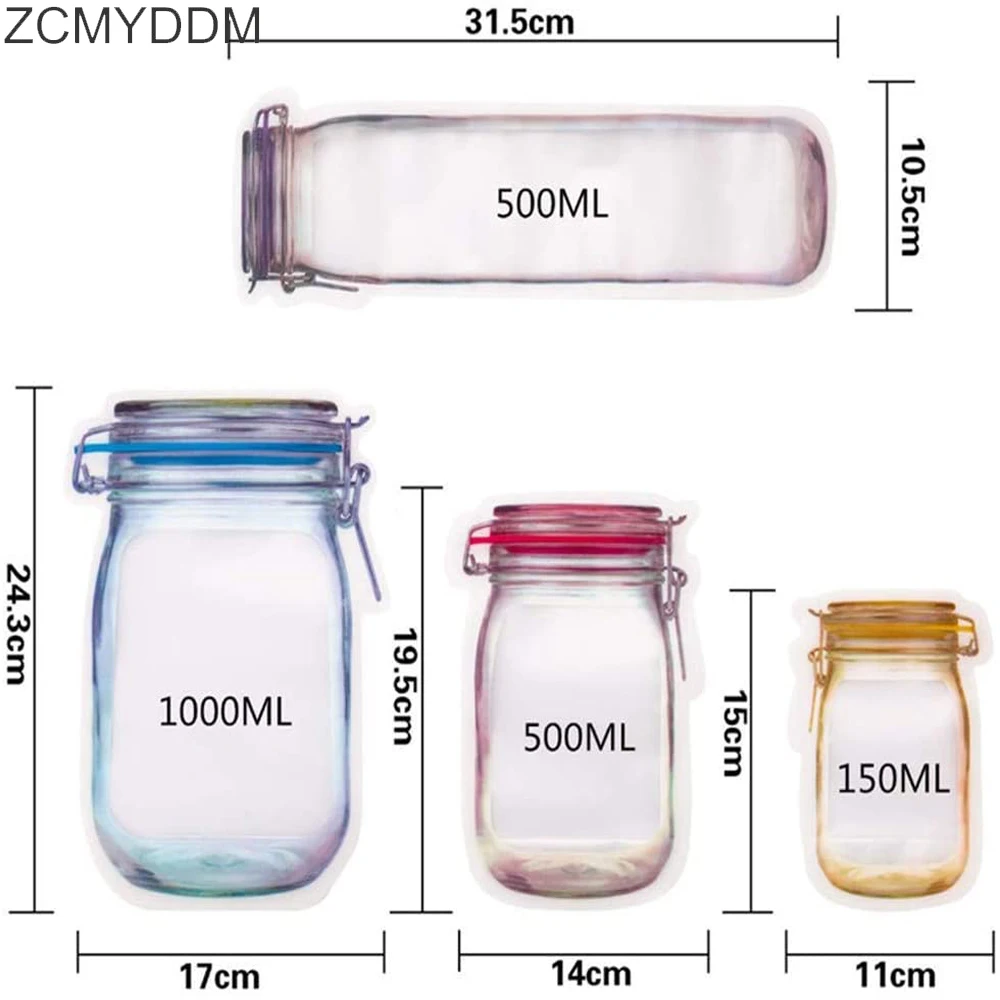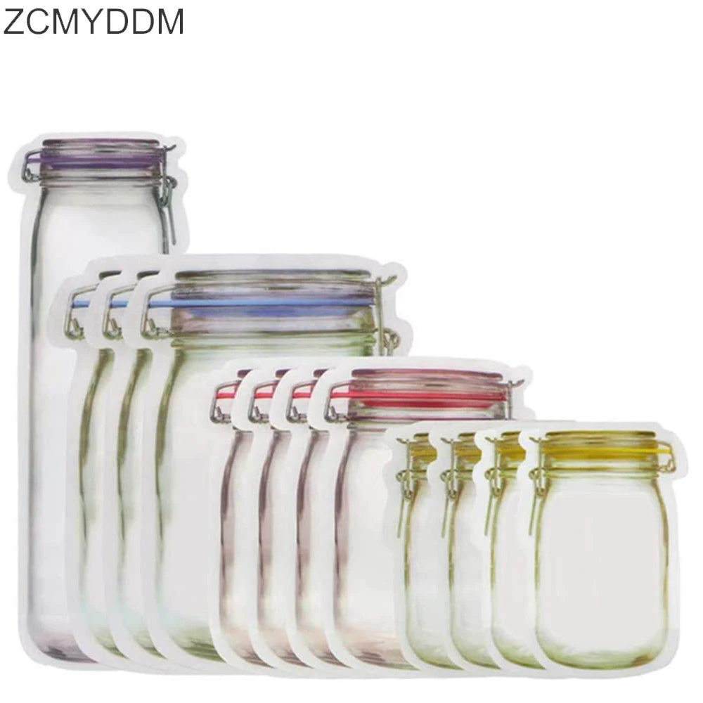 Многоразовые мешки ZCMYDDM для бутылок, мешки для хранения продуктов, пакеты для хранения закусок, герметичный кухонный Органайзер на молнии сделай сам