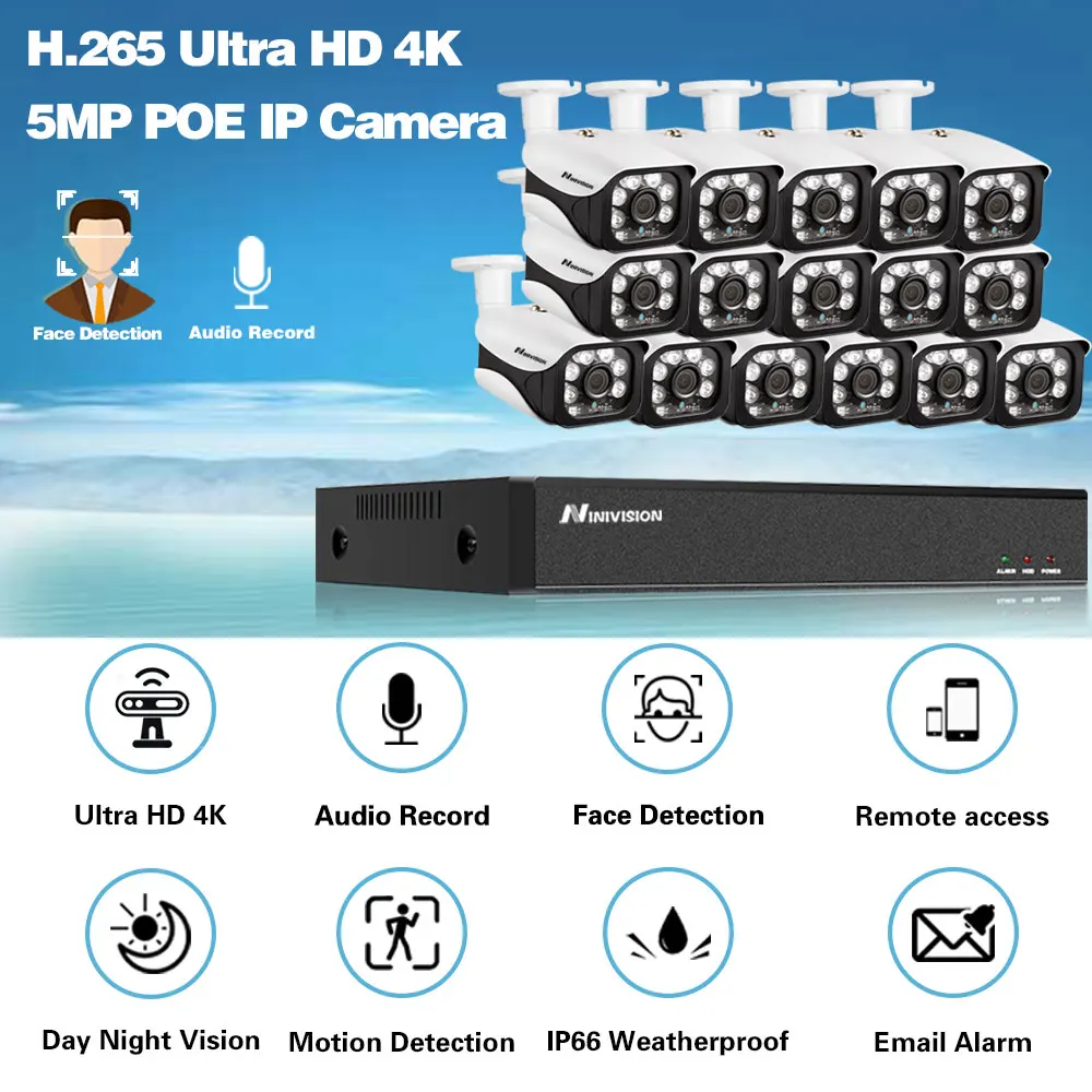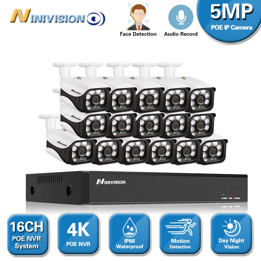 Система видеонаблюдения, H.265, 16 каналов, 4K, 5 МП, Ultra HD, 4K, POE, запись звука, наружная IP-камера, видеонаблюдение, NVR