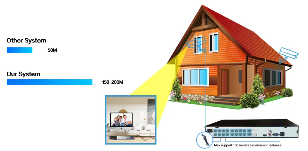 Система POE поддерживает максимальное расстояние передачи кабелей POE 150-200 м, что значительно повышает удобство домашней установки.