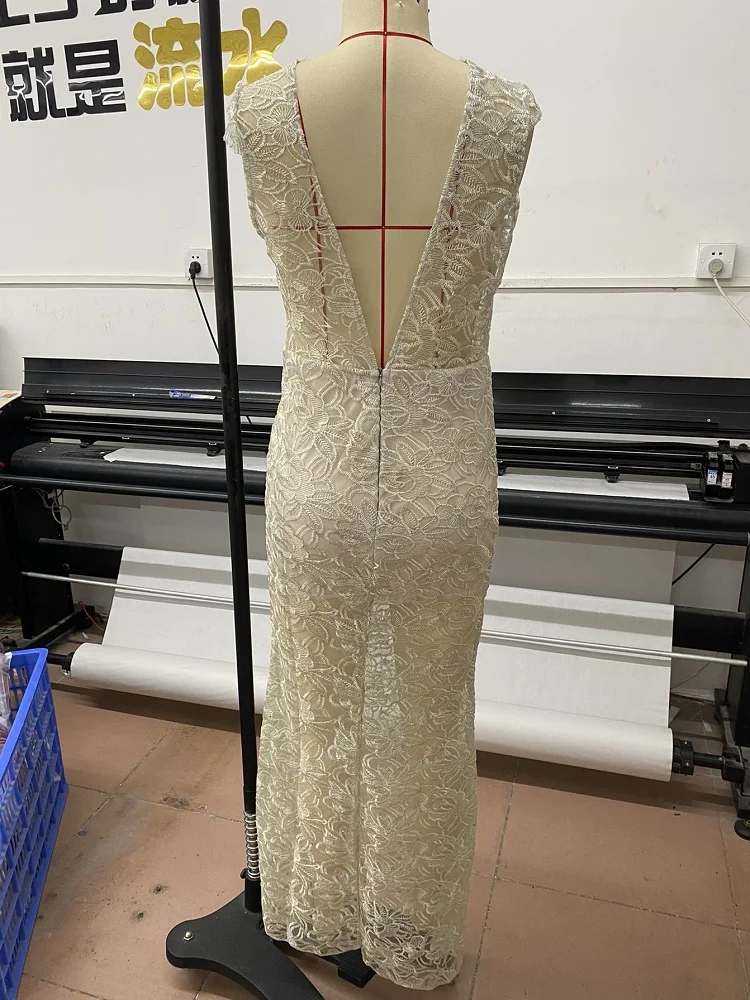 Сексуальное платье с глубоким V-образным вырезом и африканским кружевом