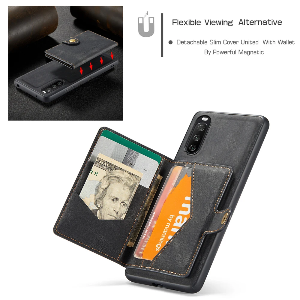 Роскошный кожаный съемный чехол для Sony Xperia 1 5 10 III, кошелек с отделениями для карт, тонкий держатель-подставка, сумки для телефона, защитный чехол