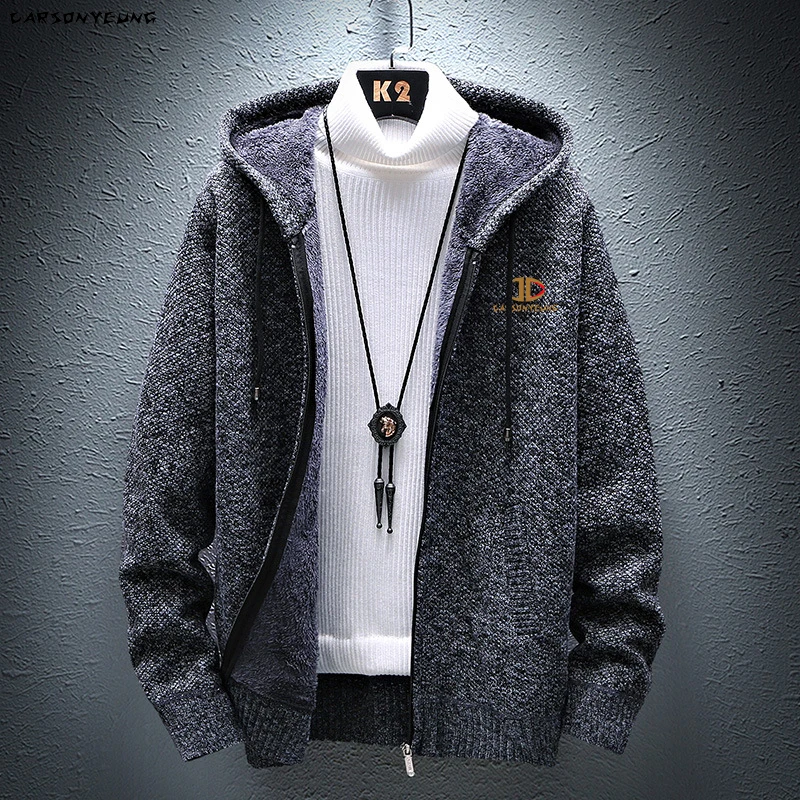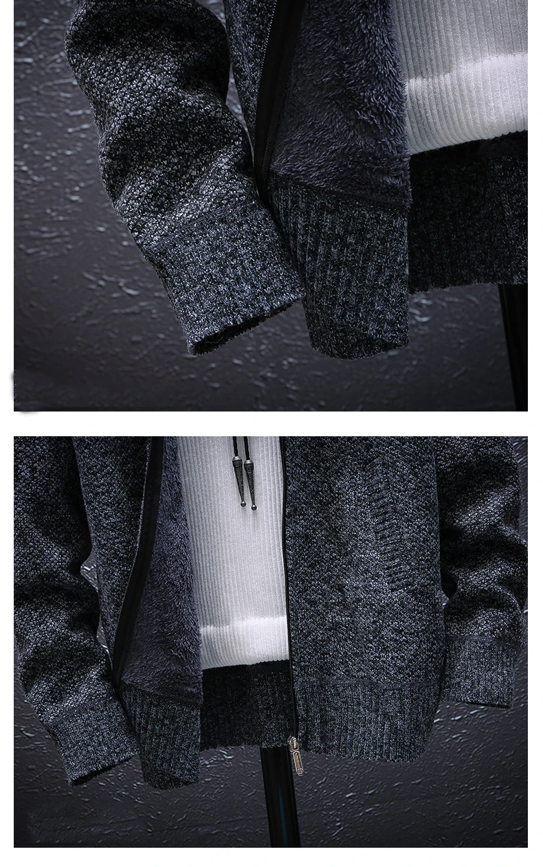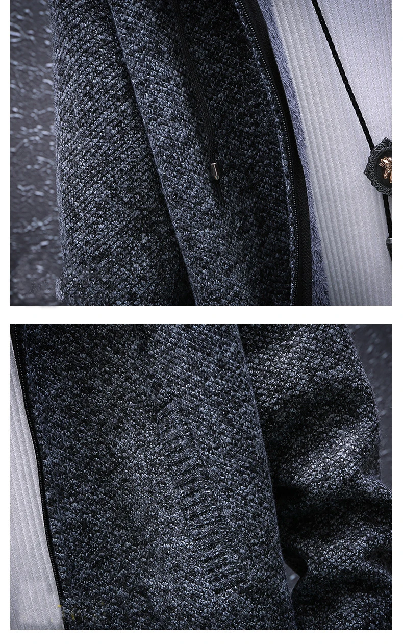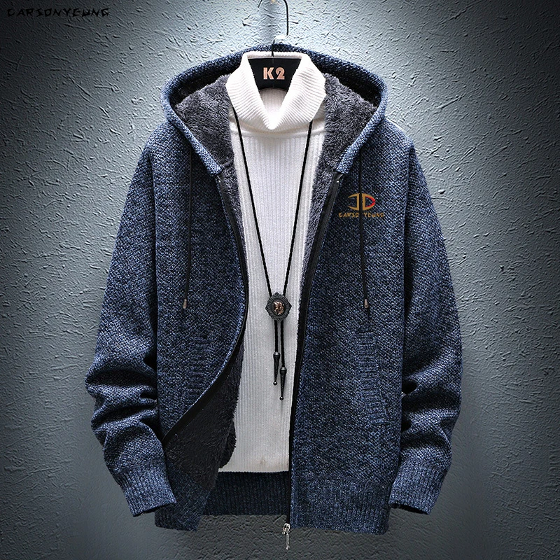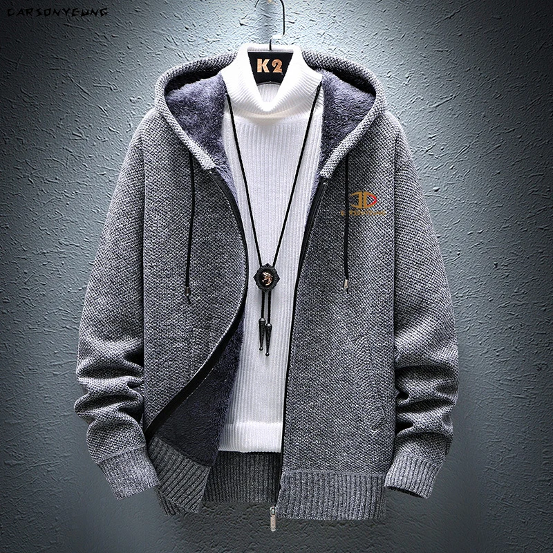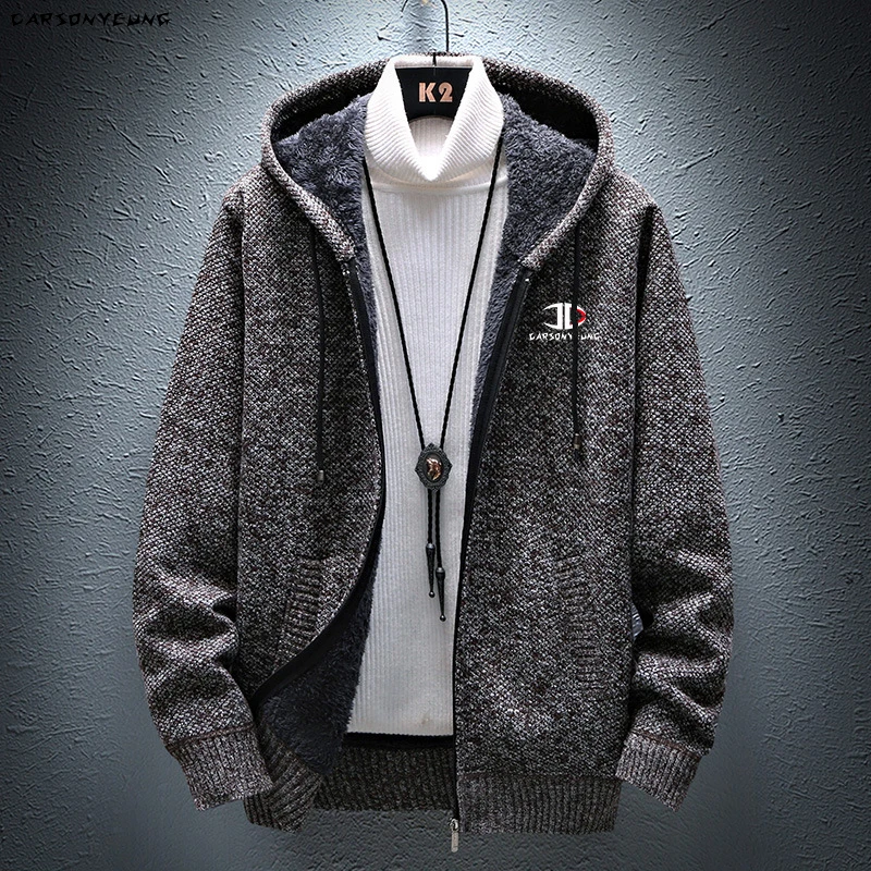 Новинка, зимний мужской свитер, пальто, вязаный свитер с шерстяной подкладкой, куртки, мужской кардиган с капюшоном, флисовая одежда на молнии