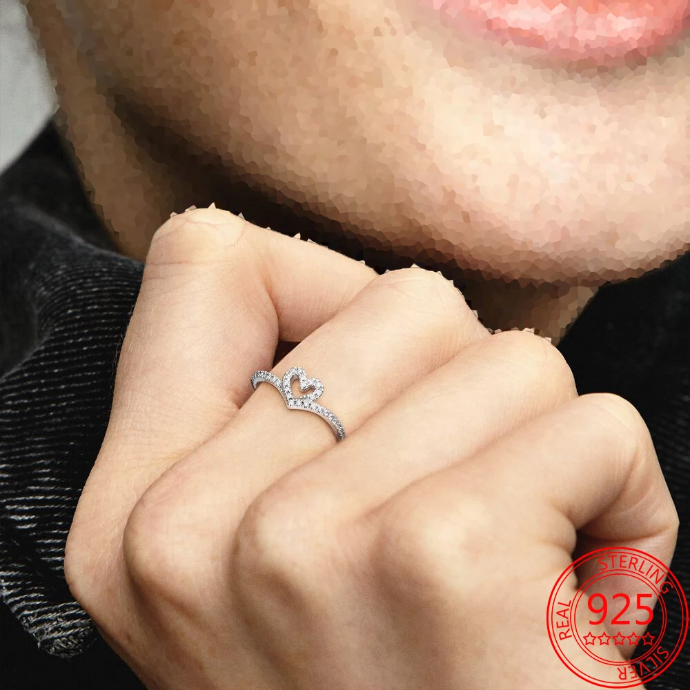 Оригинальное блестящее серебряное кольцо в виде желаемой кости с V-образным бриллиантом, Брендовое кольцо из розового золота 925 пробы, подходит для брендового подарка