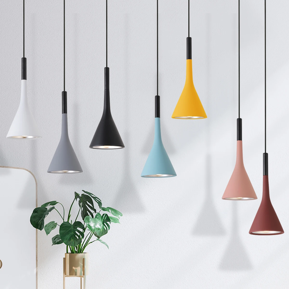 Светодиодные подвесные светильники E27, алюминиевая Воронка с абажуром, прикроватное освещение, потолочный светильник для дома, гостиной, столовой