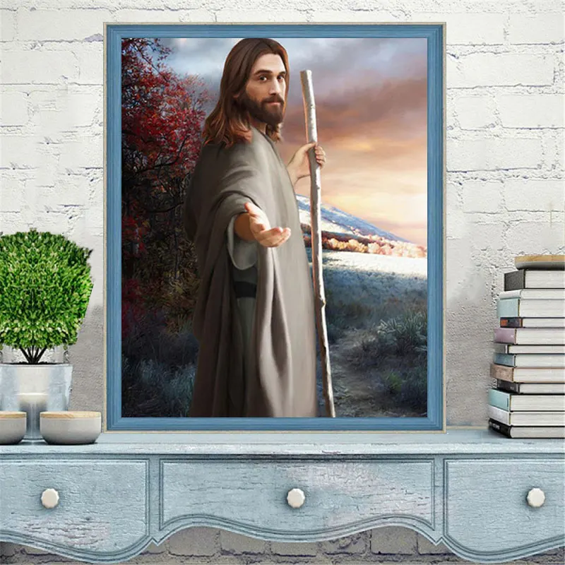 Алмазная вышивка с изображением Иисуса, Набор для вышивки крестиком из круглых и квадратных страз, украшение для дома