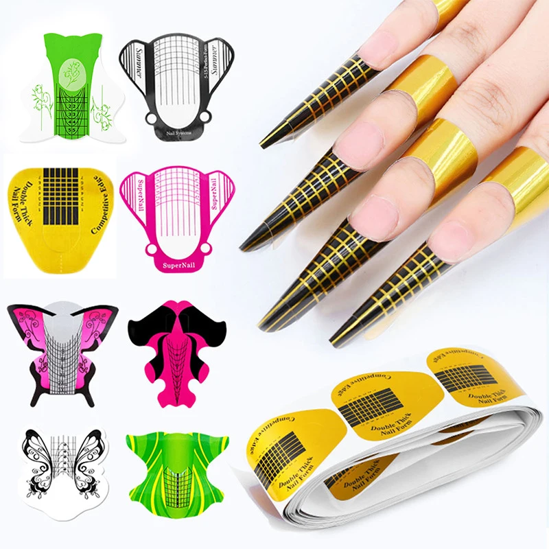 100pcsset Professional Nail Forms Self-Adhesive Nail Art Paper Tray...