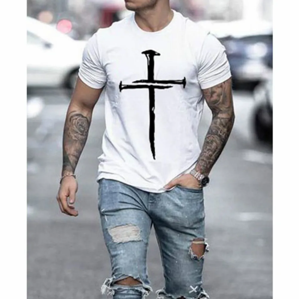 Мужская футболка с принтом в виде креста, повседневная спортивная р...