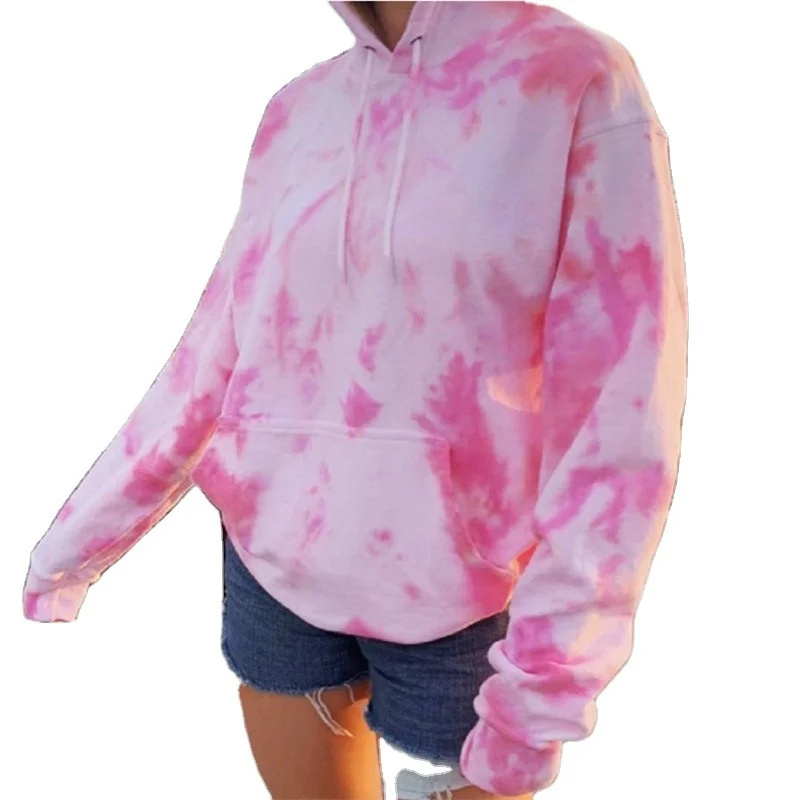 Негабаритных розовый тай-дай толстовка женская модная кофта с принт...