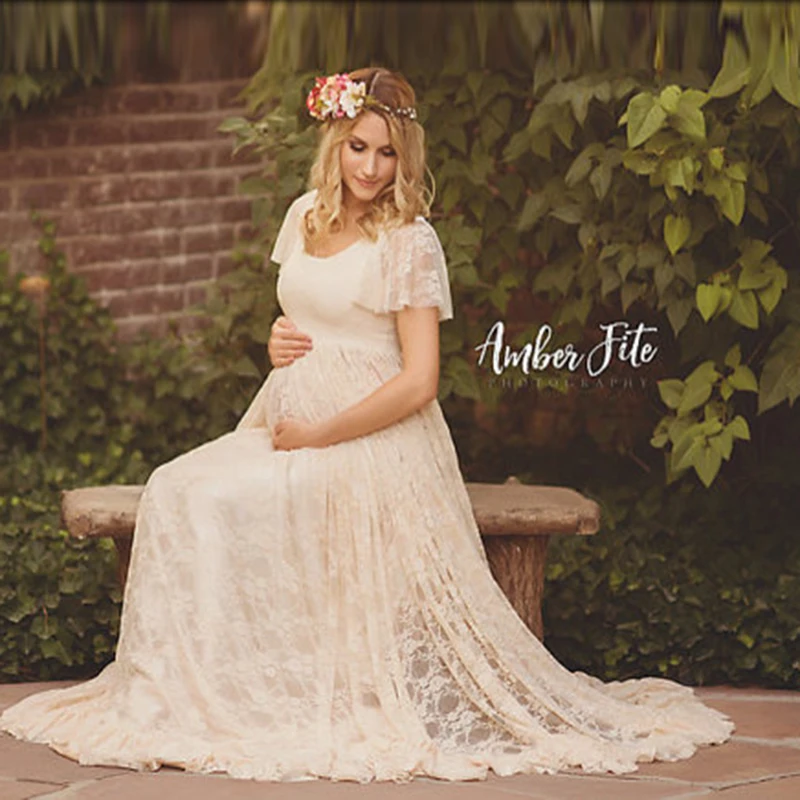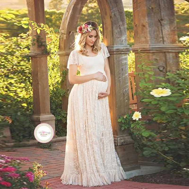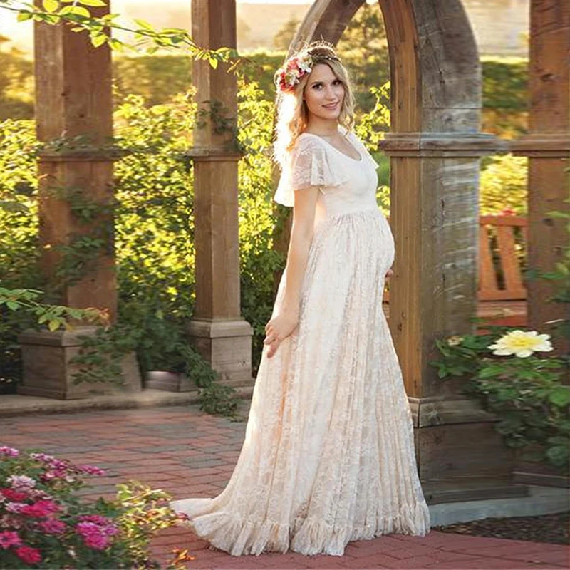 Платье для будущей матери беременность фотосъемка платья летнее мягкое кружевное свободное кружевное платье с круглым вырезом милый стиль