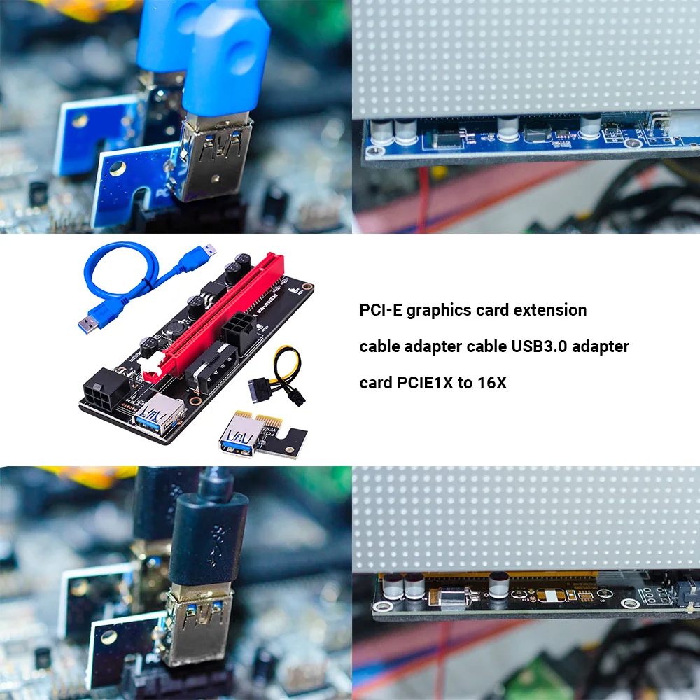 5. Версии 009S riser kits являются новейшими и верхними из линейных решений для настройки GPU горных установок. 4 твердотельных конденсатора, 60 см USB 3,0 кабель, подходит для всех оконных систем, XP и LINUX