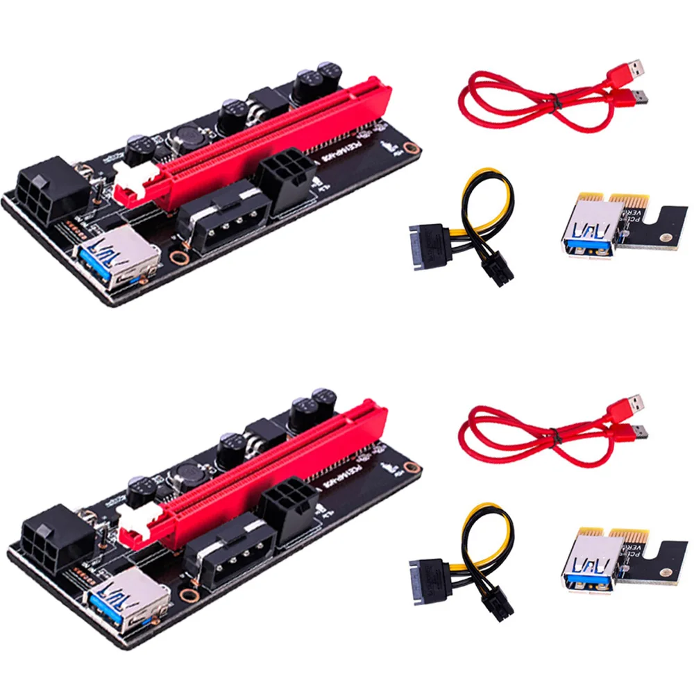 Райзер VER009S PCI-E, двойная 6-контактная Адаптерная карта PCIe 1X до 16X, карта-расширитель USB 3,0, кабель для передачи данных для майнинга BTC