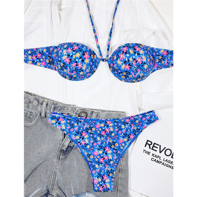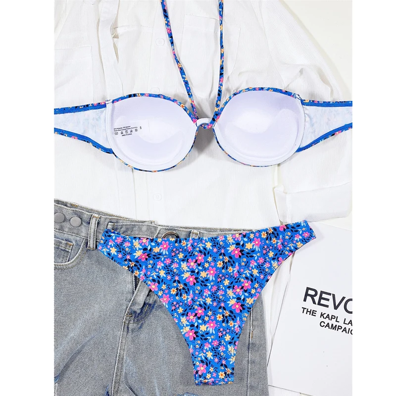 Новый Цветочный купальник бикини на косточках женский сексуальный Холтер с открытой спиной Купальники 2021 летний купальный костюм женский бразильский комплект бикини