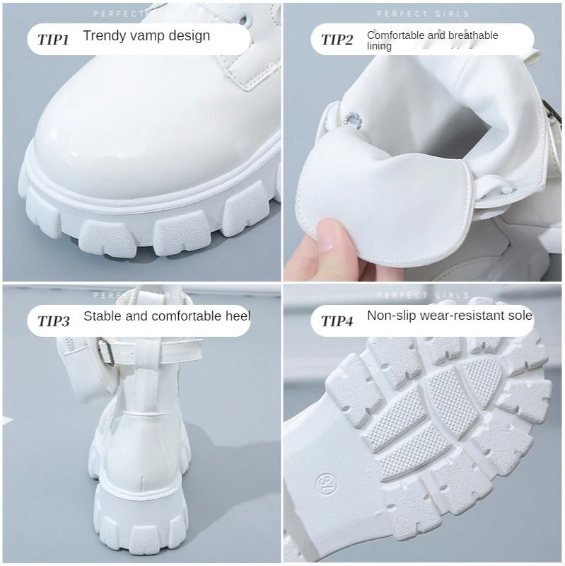 Женские ботинки 2021, модные массивные ботинки, ботинки на платформе с карманами, Белая обувь для женщин, осенне-зимние ботинки на высоком каблуке Botas Mujer
