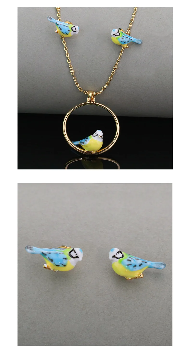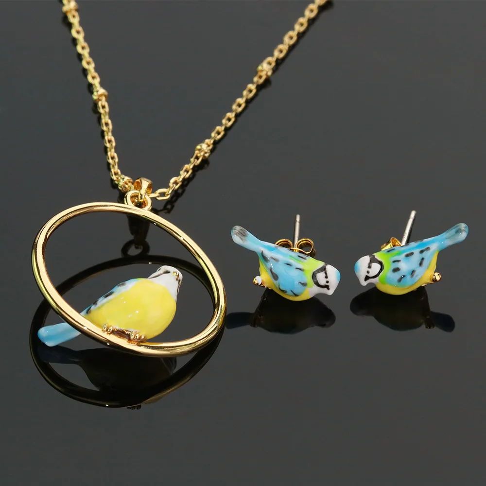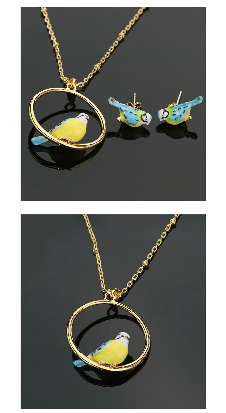 Ожерелье и серьги в виде птицы, милые Ювелирные наборы из эмали, медь, аксессуары для вечеринок, хороший подарок