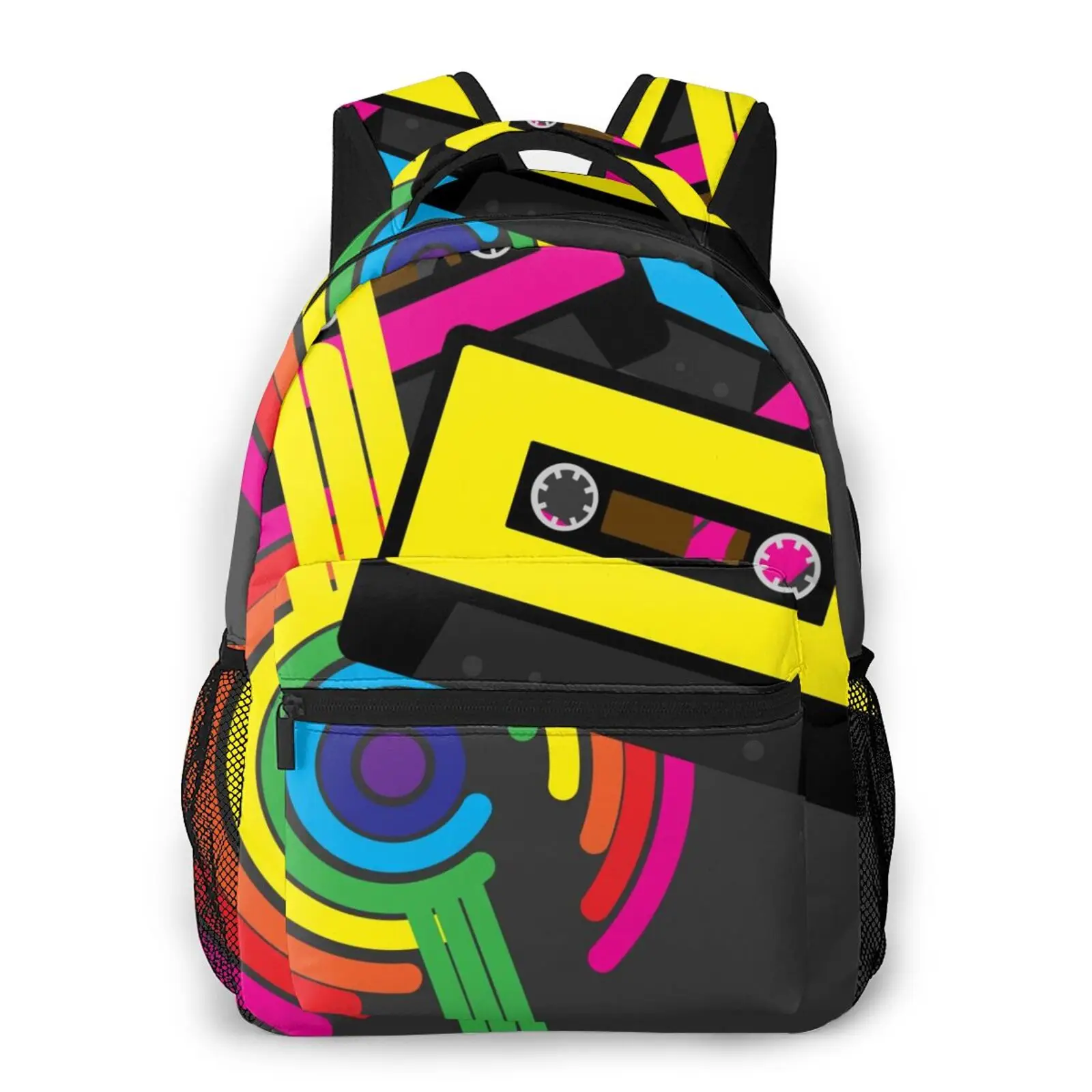 Модный школьный Радужный рюкзак для колледжа, повседневный уникальный Радужный рюкзак в стиле ретро с аудиокассетной лентой для книг, дорожная сумка через плечо для подростков