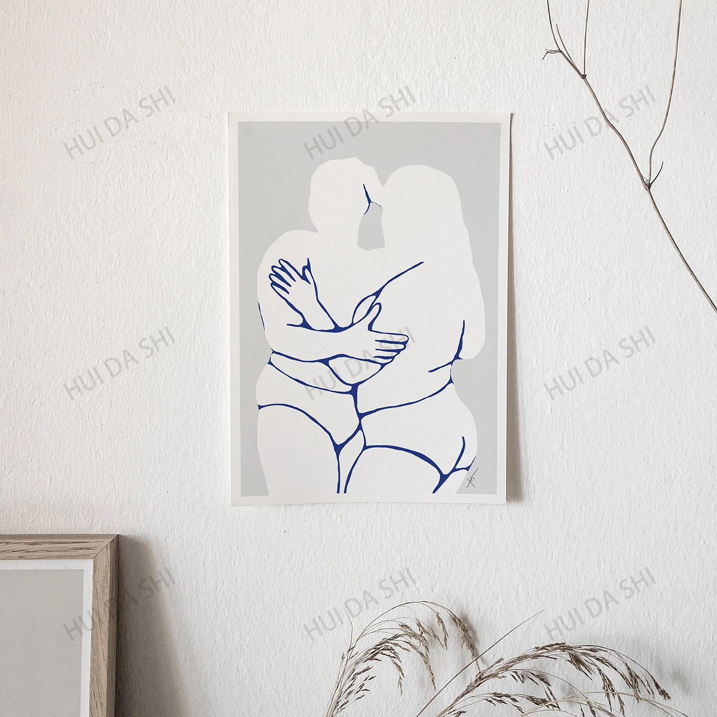 Абстрактная обнаженная женская печатная искусство, современный декор для стен, минималистичное ЛГБТ искусство, фотография, подарок для лесбиянок, парные обнимания, влюбленные