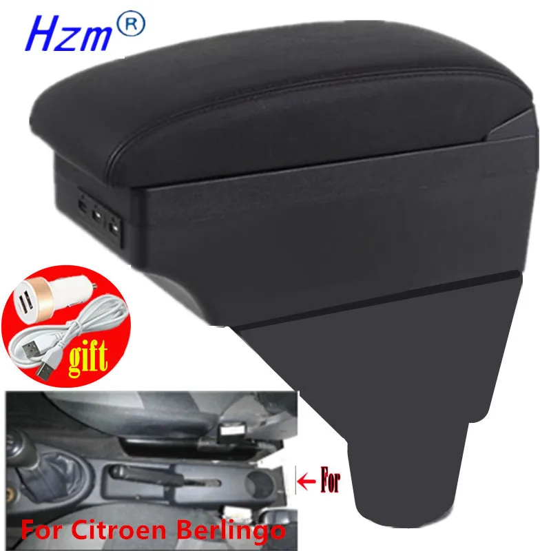Подлокотник для Citroen Berlingo, автомобильный подлокотник для Citroen Berlingo, внутренний ящик для хранения, детали, USB, светодиодная подсветка, простая установка