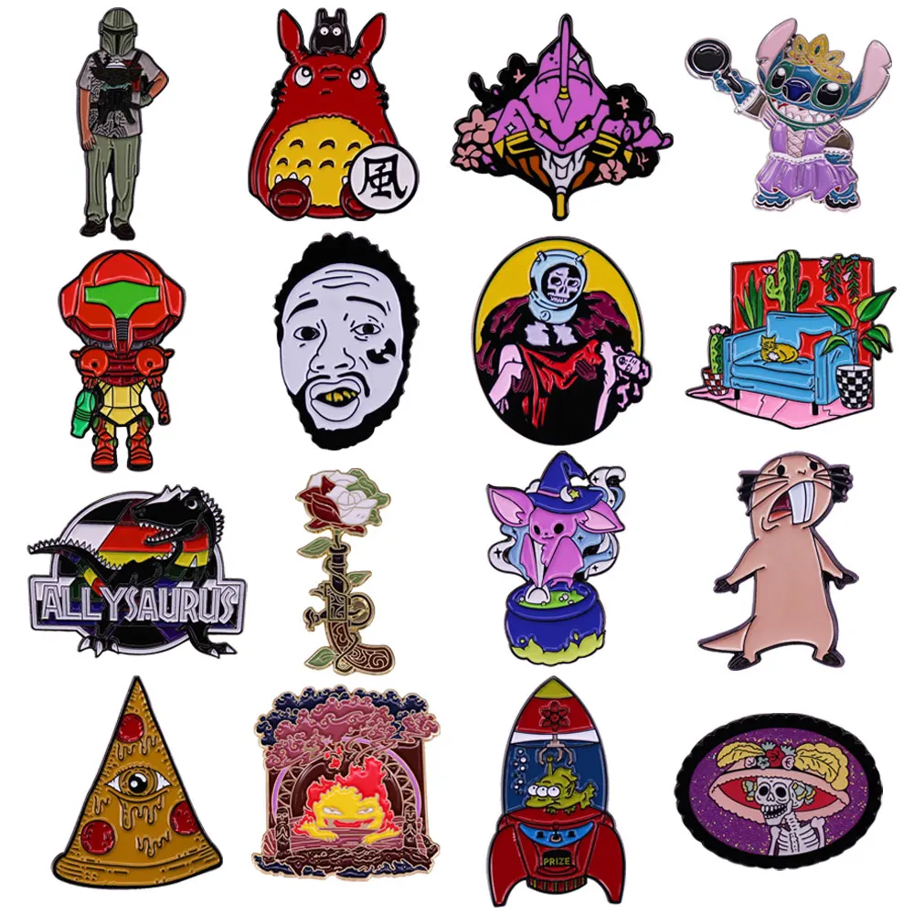 Забавные жесткие эмалированные заколки в стиле аниме с героями фильмов и телефигурок, металлические значки в виде динозавров для рюкзака, воротника, отворота, модные украшения