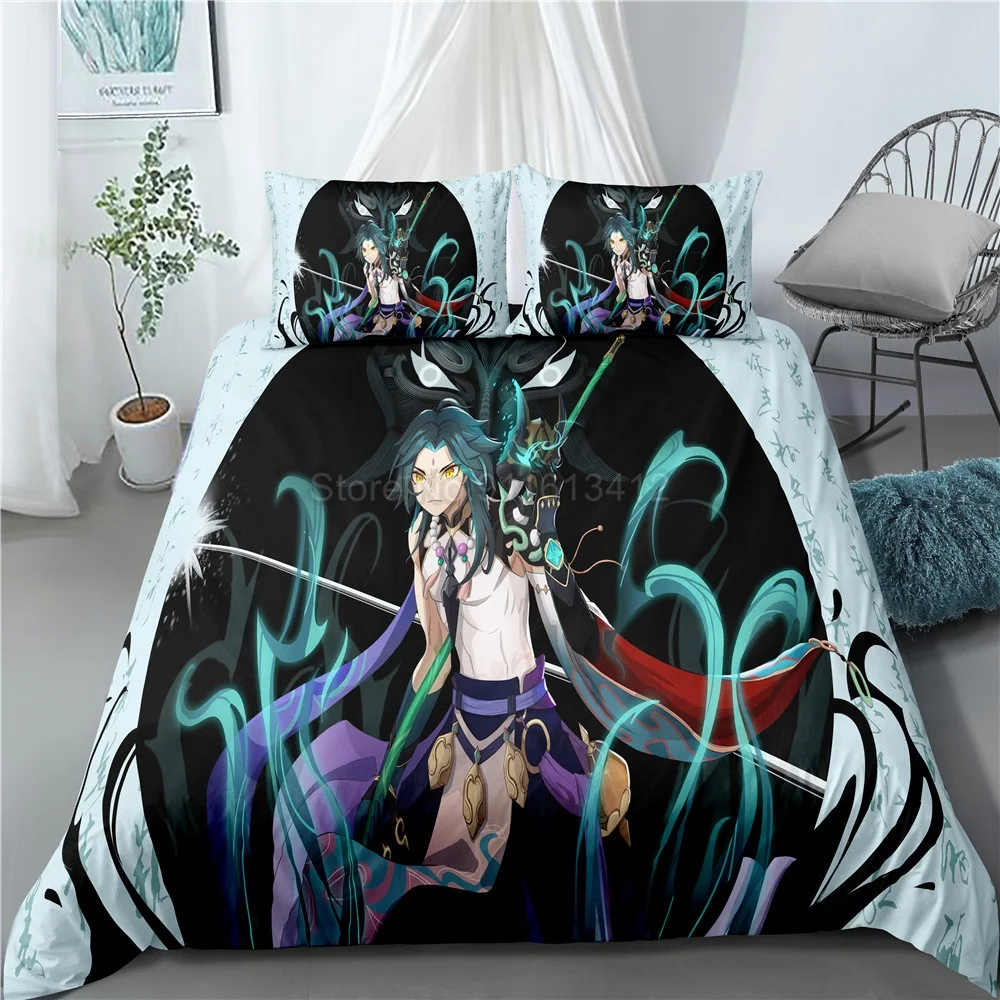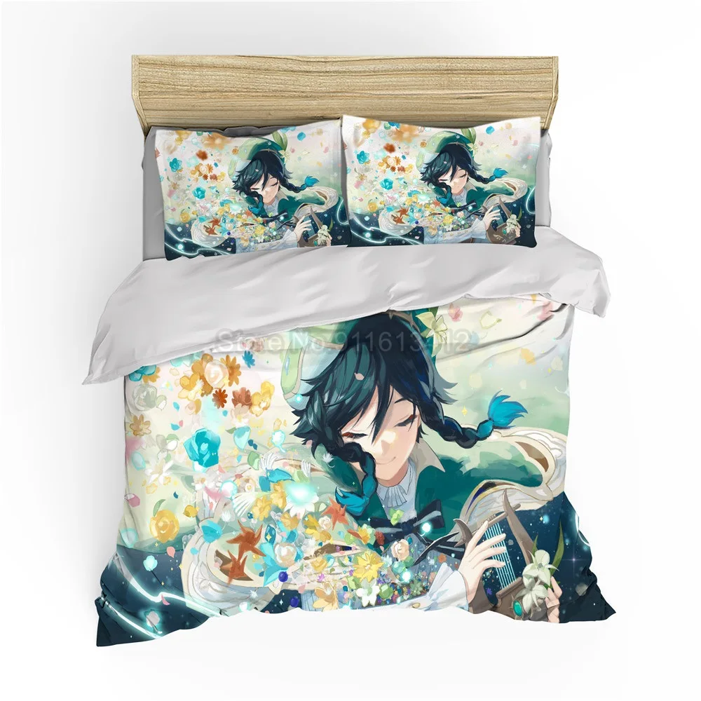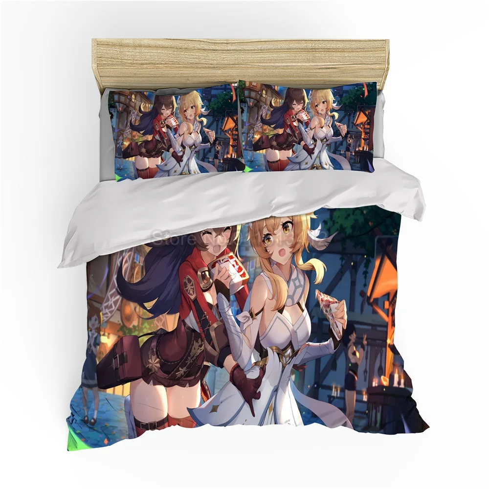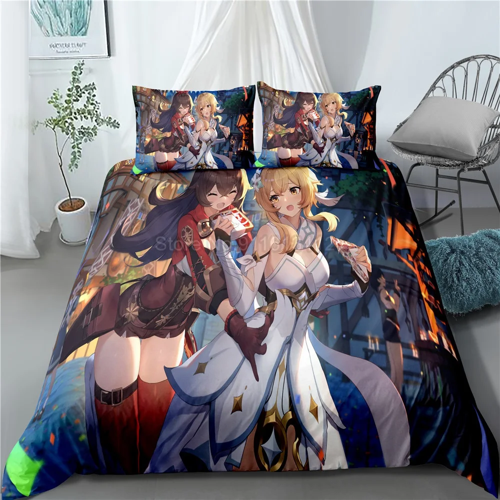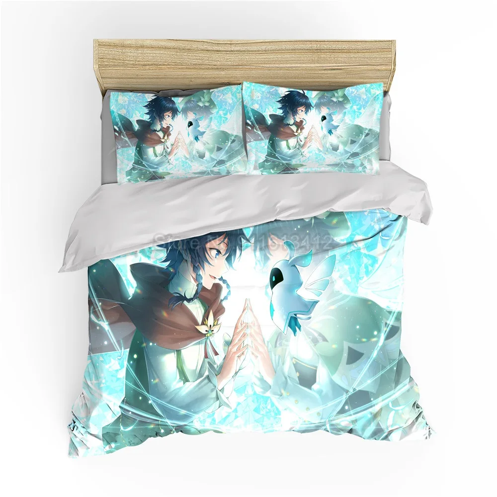 Комплект постельного белья с героями мультфильмов Genshin Impact Game, Детский 3D пододеяльник, одеяло, постельное белье для детей, для мальчиков, спальни, домашний декор
