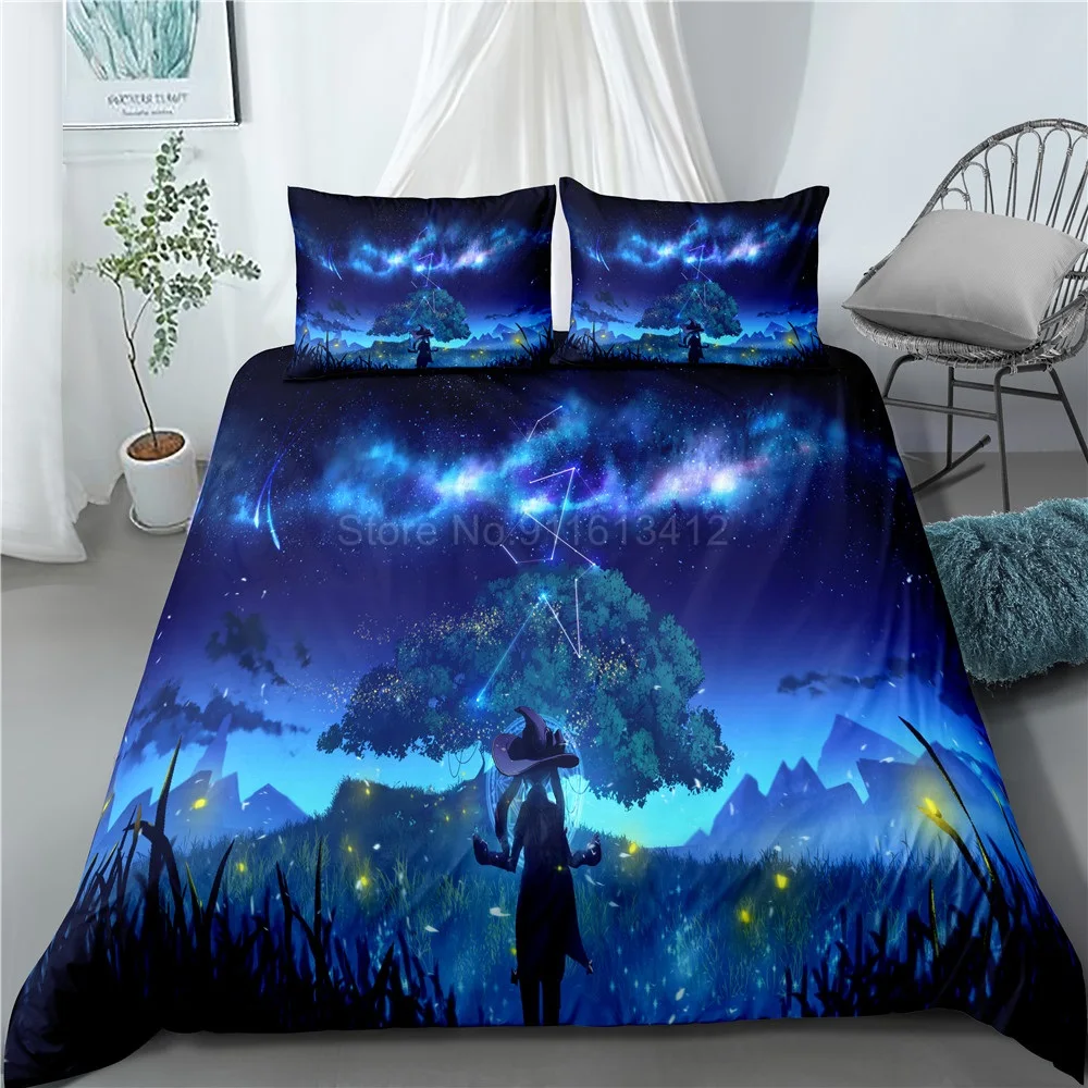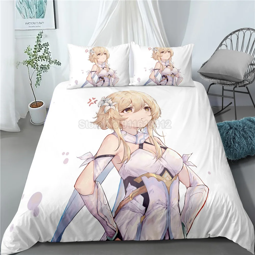 Мультяшный Комплект постельного белья Genshin Impact Game, Детский 3D пододеяльник, одеяло, постельное белье для детей, мальчиков, спальни, домашний декор