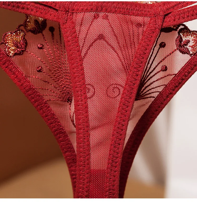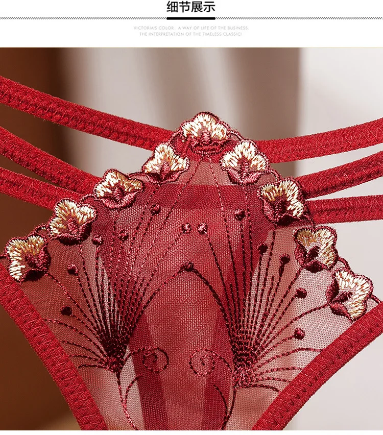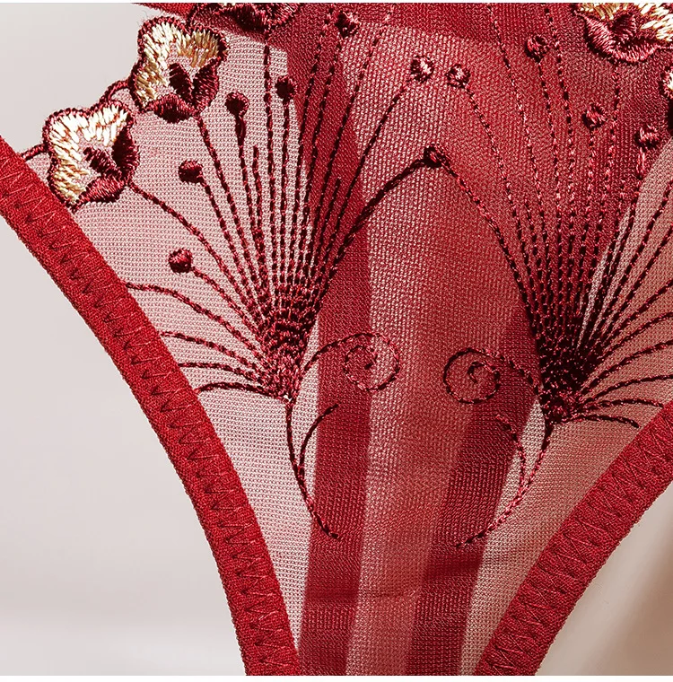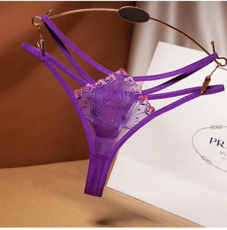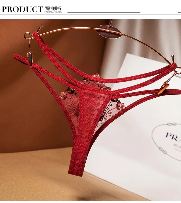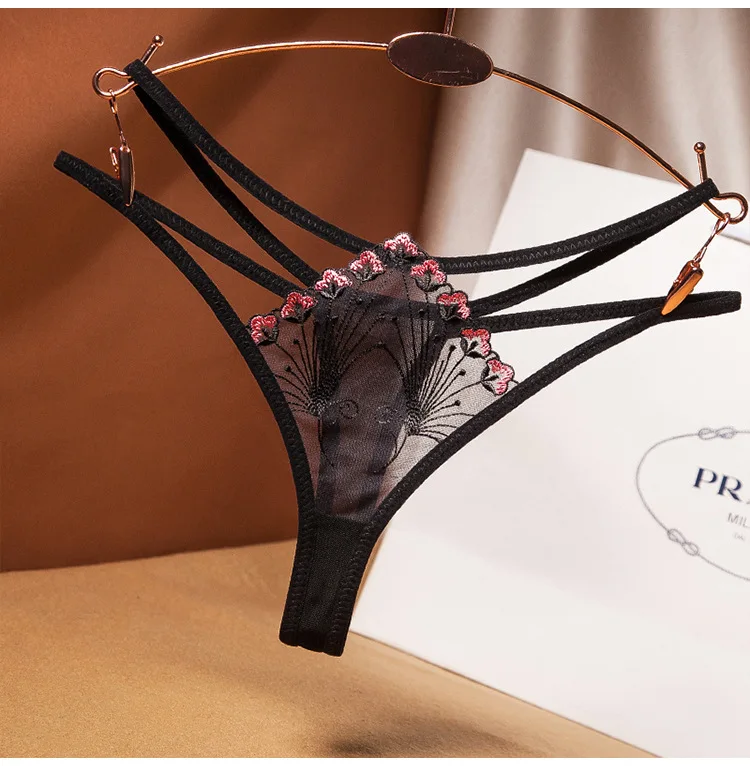 Трусики-стринги женские с цветочной кружевной вышивкой и заниженной...