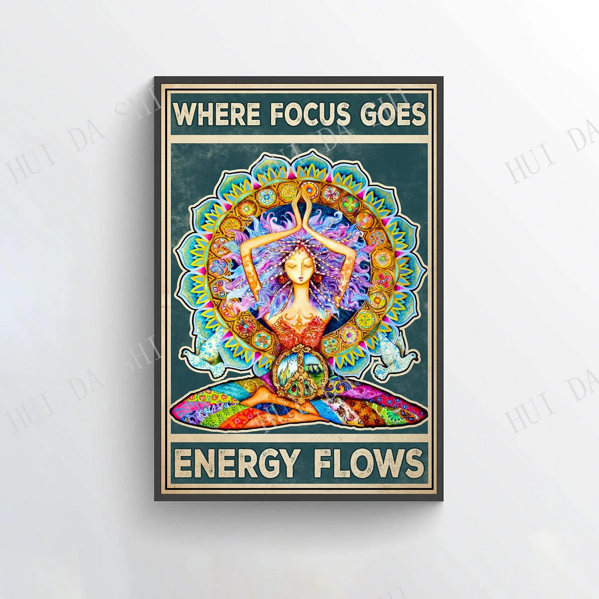 Плакаты с винтажным принтом в виде чакры для йоги, движение руки, К...