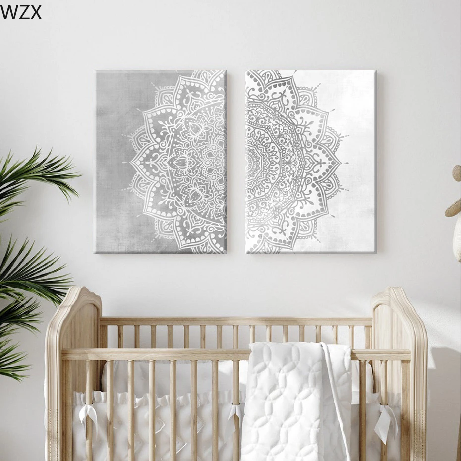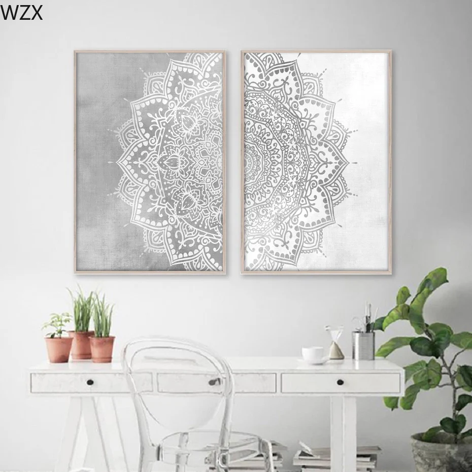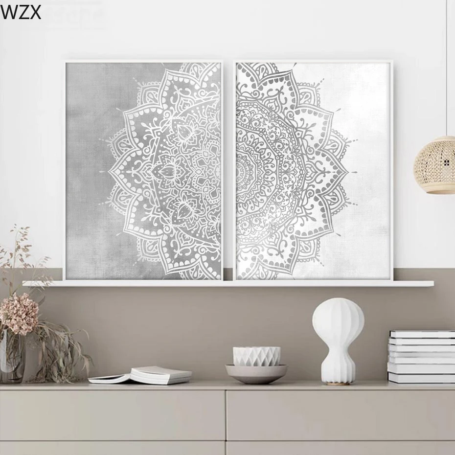 Богемный рисунок мандалы, Настенная картина бежевого, серого и белого цвета на холсте, картина для йоги, гостиной, домашний декор интерьера, плакат