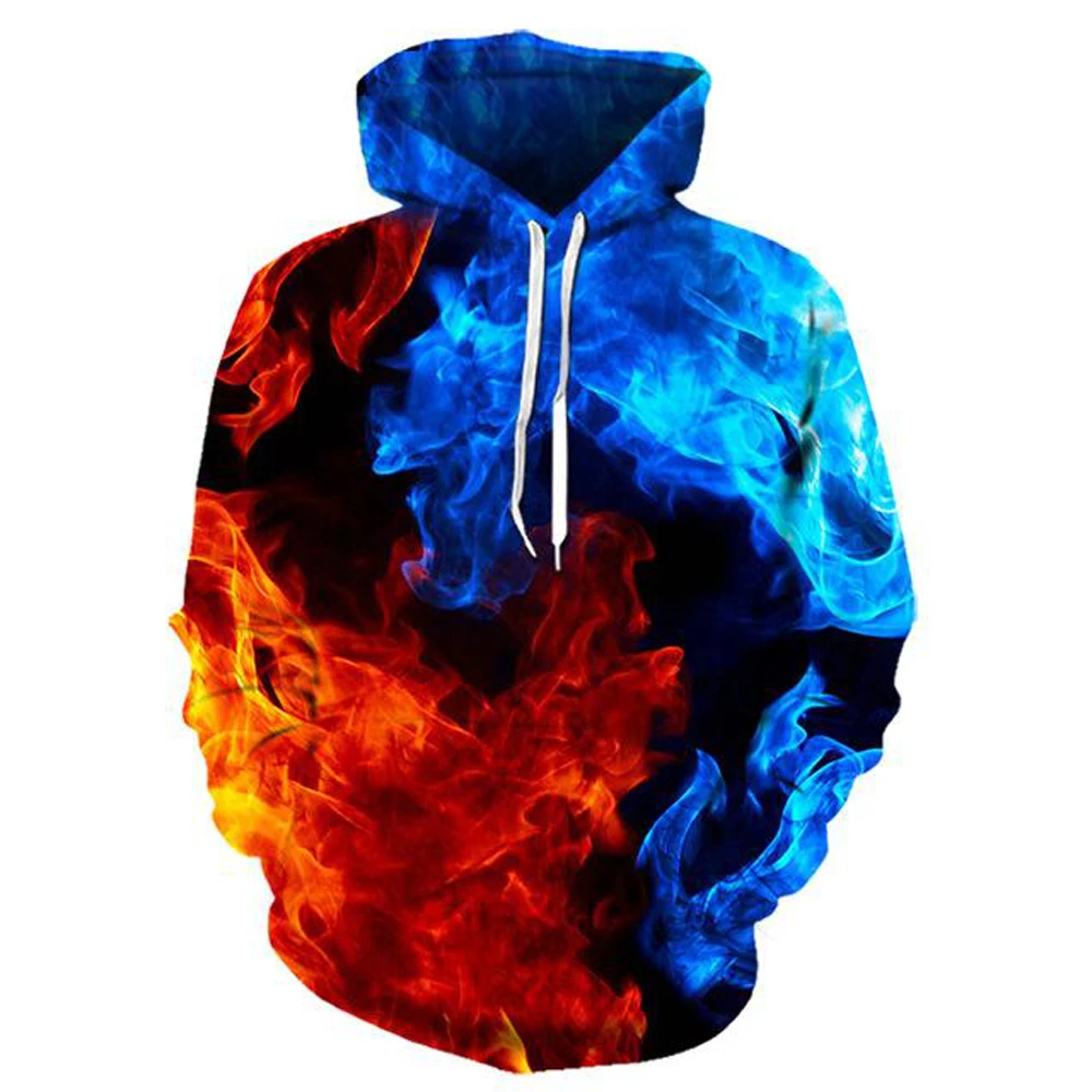 Новинка 2021, красочная толстовка с пламенем, свитшоты с 3d принтом...