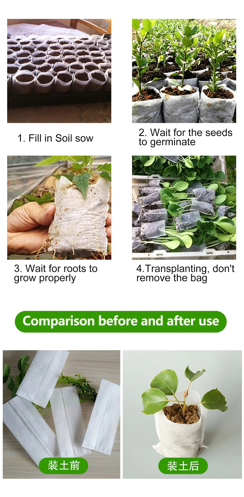 ☺Экологически чистый дышащий и биоразлагаемый нетканый материал, нет необходимости снимать сумку при пересадке, что повышает выживаемость растений.
