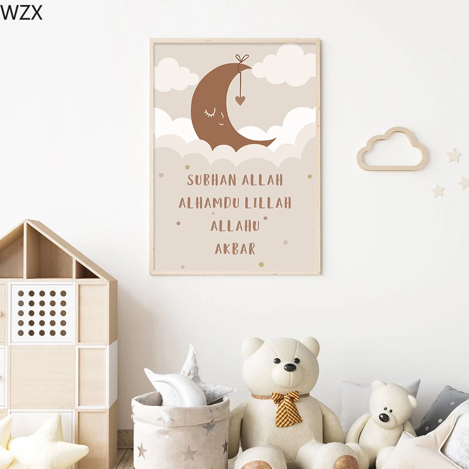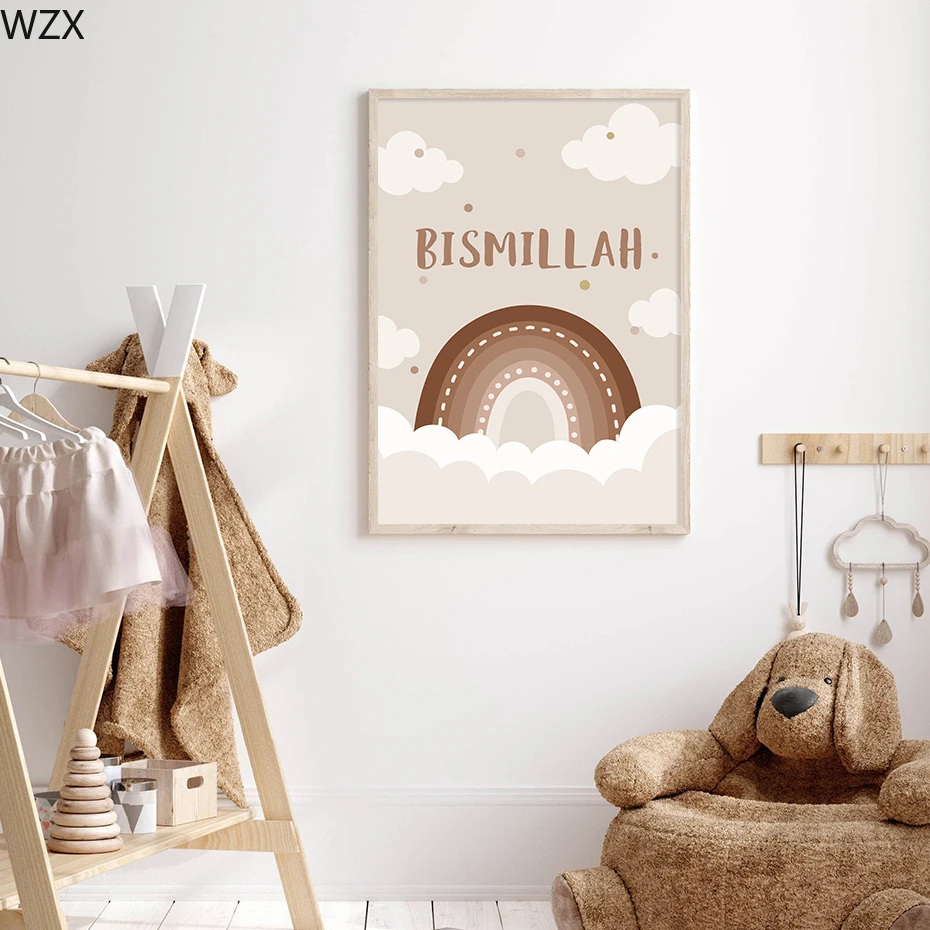 Исламский Bismillah Радуга Луна облака детская Картина на холсте Настенная картина Картина для детской комнаты домашний декор плакаты