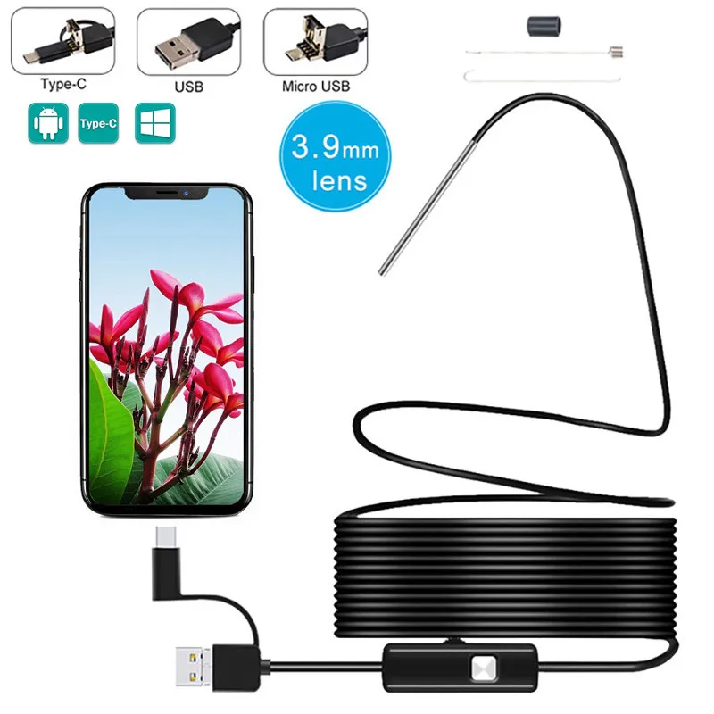 Автомобильная камера-эндоскоп, 1080p, 3,9 мм, USB Type-C