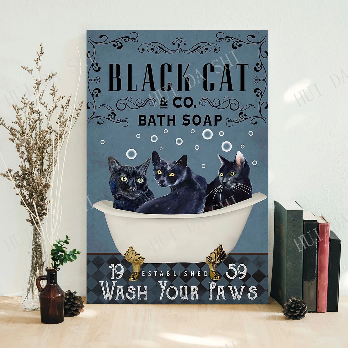 Black Cat co. Мыло для мытья лап, плакат с кошкой, украшение на стену, лучшие подарки, настенная подвеска с кошкой, плакат с черной кошкой