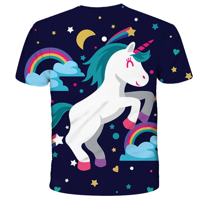 Футболка для мальчиков и девочек с единорогом, одежда с мультяшным принтом, футболка с 3D принтом, Новинка лета 2021