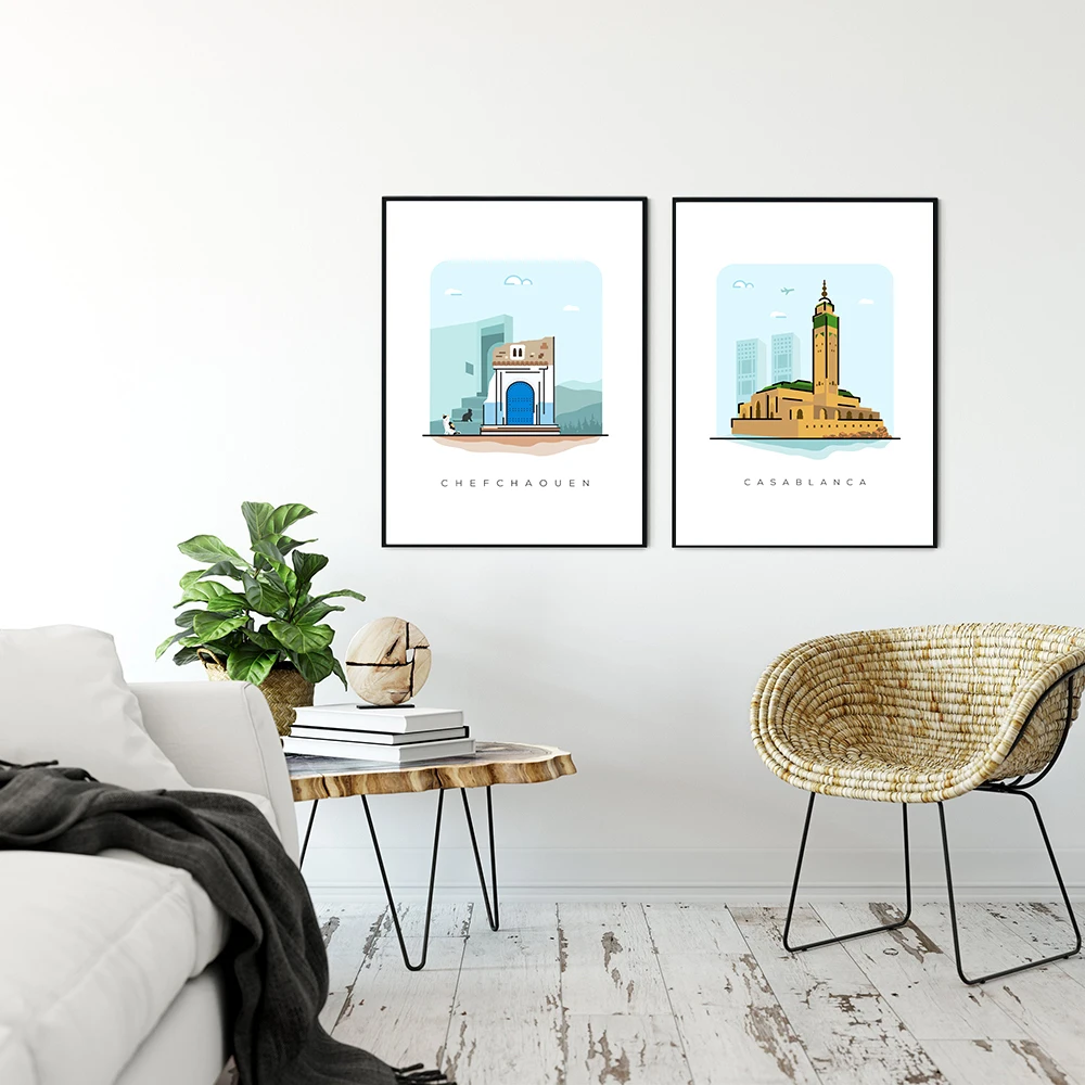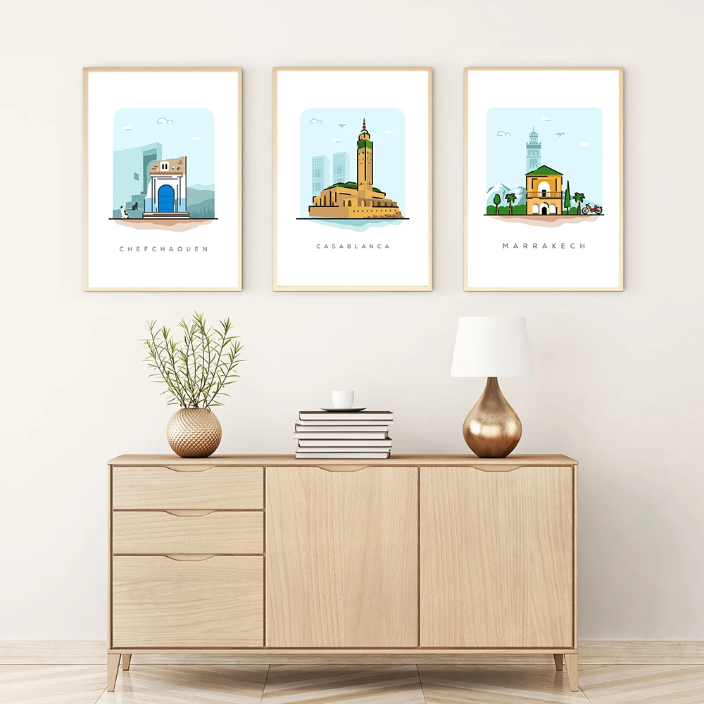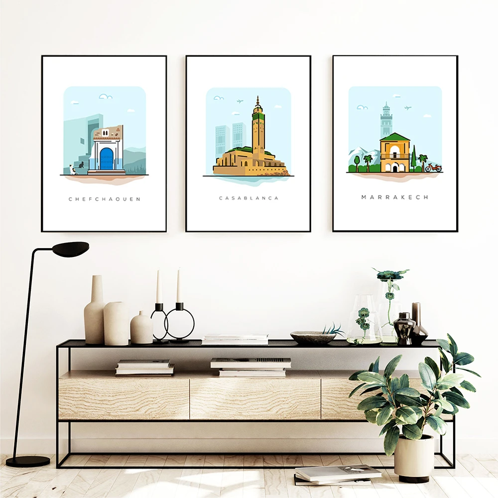 Марракеш, марокканский постер для путешествий, принт Chefchaouen, Касабланка, холст, живопись, нордическая простая Настенная картина, декор для спальни