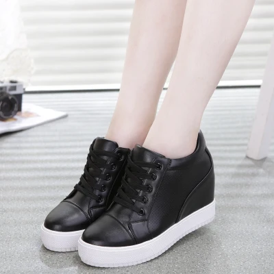 Женские кроссовки на скрытой танкетке, Белые Повседневные туфли на высокой платформе, обувь на танкетке, 2021