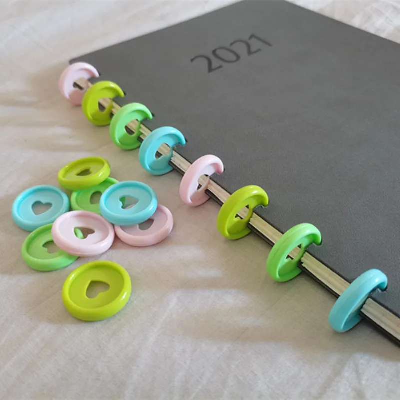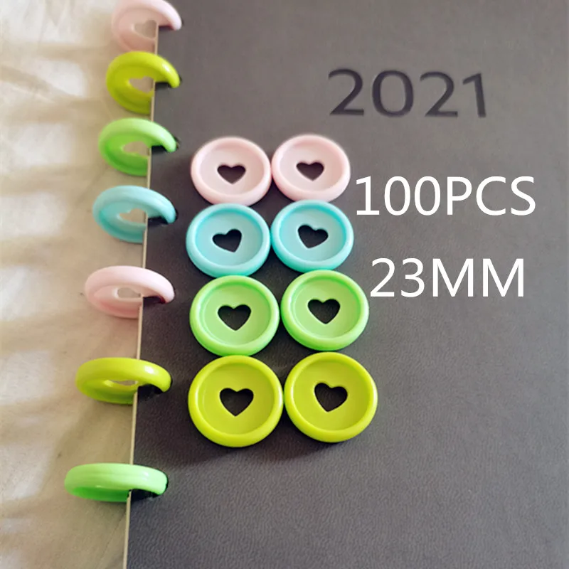 Новинка, пластиковое Переплетное кольцо 100 шт., 2,3 см, с отверстием в виде сердца, компакт-диск с отверстием в форме сердца, самодельная переплетная кольцевая застежка с листьями